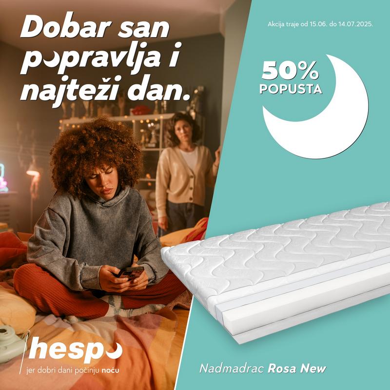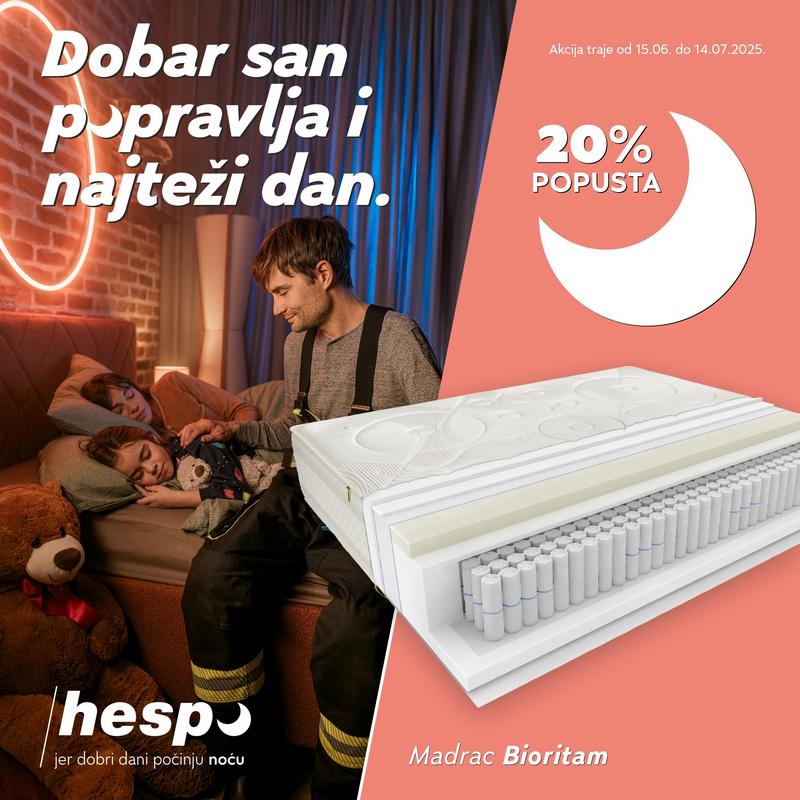 Posjetite naš Hespo salon i odaberite nešto iz bogatog asortimana kreveta, madraca, nadmadraca i podnica uz mjesečne popuste … Jer dobri dani počinju noću, a još bolji uz Hespo popuste u Prima 3 Split ✨🌙